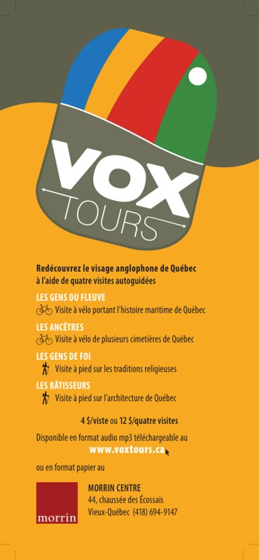 Morrin Centre. “Les ancêtres : vie, mort et descendance des anglophones de la ville de Québec,” 2008.