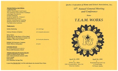 Quebec Federation of Home and School Associations (QFHSA). “QFHSA 55th Annual General Meeting and Conference,” April 23, 1999.