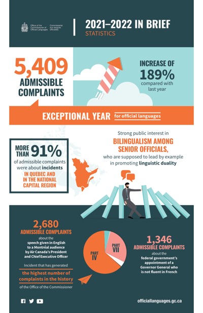Canada. Office of the Commissioner of Official Languages. “2021-2022 In Brief : Statistics,” 2022.