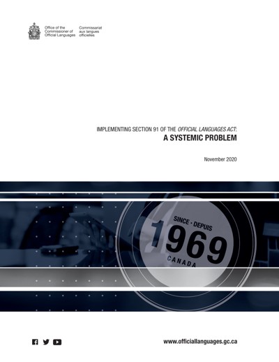 Canada. Office of the Commissioner of Official Languages. Implementing Section 91 of the Official Languages Act : A Systemic Problem, November 2020.