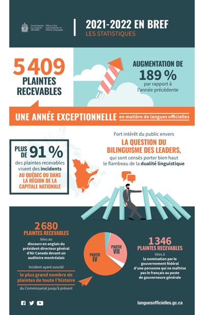 Canada. Office of the Commissioner of Official Languages. “2021-2022 en bref : les statistiques,” 2022.