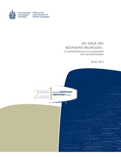 Canada. Office of the Commissioner of Official Languages. Au-delà des réunions bilingues : comportements en leadership des gestionnaires, March 2011.