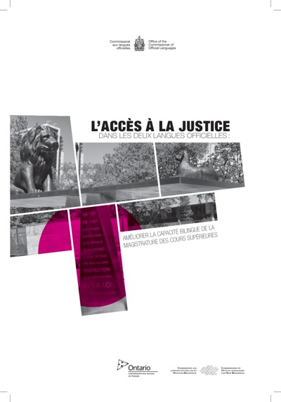Canada. Office of the Commissioner of Official Languages. L’accès à la justice dans les deux langues officielles : améliorer la capacité bilingue de la magistrature des cours supérieures, 2013.