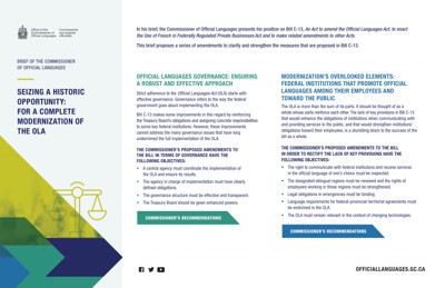 Canada. Office of the Commissioner of Official Languages. Seizing a Historic Opportunity : For a Complete Modernization of the OLA, 2022.