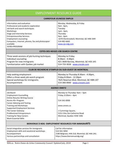 NDG Community Council (NDGCC). “Employee Resource Guide,” July 2018.