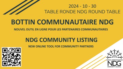NDG Community Council (NDGCC). “NDG Community Listing / Bottin communautaire NDG” Presented at the NDG Round Table / Table ronde NDG, October 30, 2024.