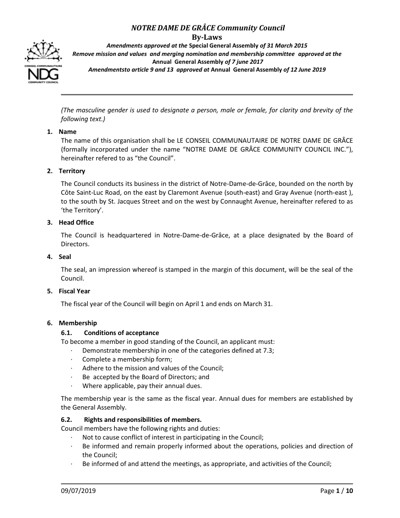 NDG Community Council (NDGCC). “Notre Dame de Grâce : Community Council By-Laws,” July 9, 2019.