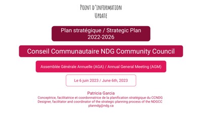 NDG Community Council (NDGCC). “Plan Stratégique / Strategic Plan 2022-2026,” June 6, 2023.