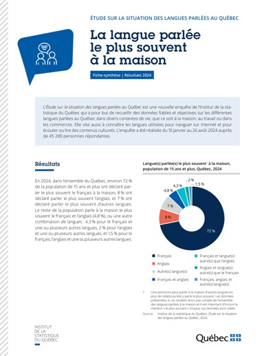 Québec. Institut de la statistique du Québec. La langue parlée le plus souvent à la maison. Étude sur la situation des langues parlées au Québec, 2025.