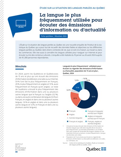 Québec. Institut de la statistique du Québec. La langue le plus fréquemment utilisée pour écouter des émissions d’information ou d’actualité. Étude sur la situation des langues parlées au Québec, 2025.