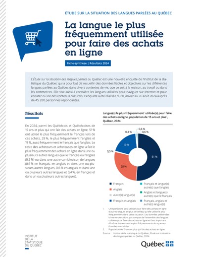 Québec. Institut de la statistique du Québec. La langue le plus fréquemment utilisée pour faire des achats en ligne. Étude sur la situation des langues parlées au Québec, 2025.