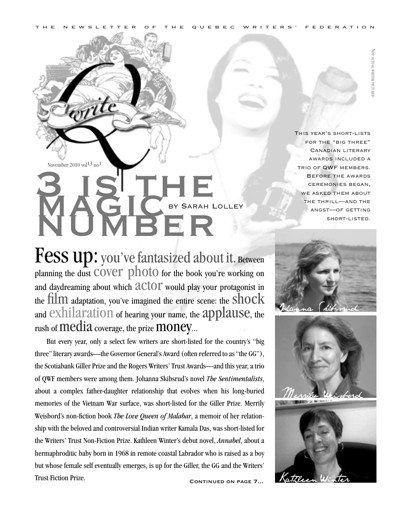 Quebec Writers’ Federation (QWF). “Q Write” 13, no. 1 (November 2010).