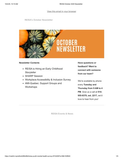 Réseau de l’est de l’île pour les services en anglais (REISA). “REISA’s October 2025 Newsletter” (October 2025).