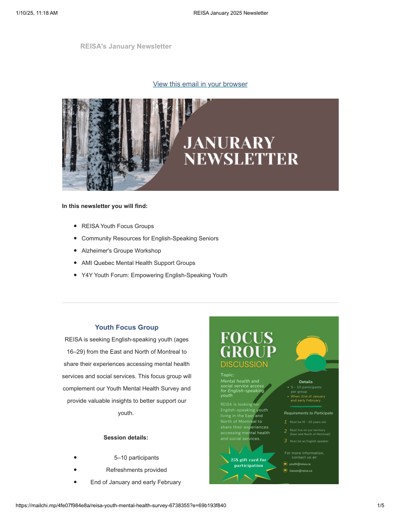 Réseau de l’est de l’île pour les services en anglais (REISA). “REISA’s January 2025 Newsletter” (January 2025).