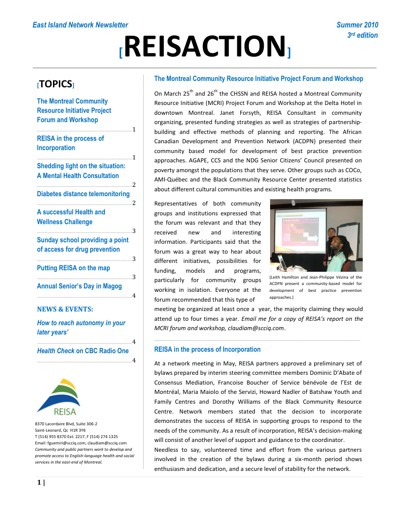 Réseau de l’est de l’île pour les services en anglais (REISA). “East-Island Network Newsletter : Reisaction,” no. 3 (Summer 2010).