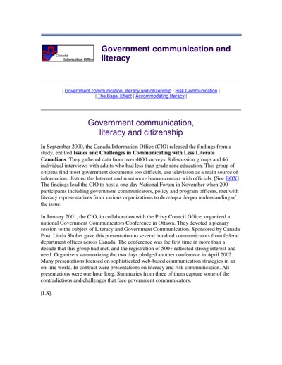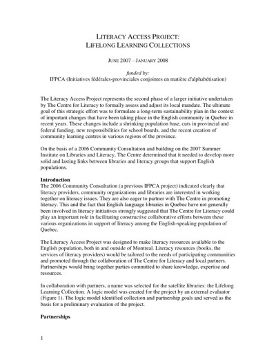 The Centre for Literacy of Quebec (CFL). Literacy Access Project : Lifelong Learning Collections, June 2007.