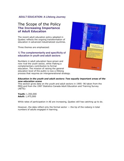 The Centre for Literacy of Quebec (CFL). Adult Education : A Lifelong Journey. Montreal, QC, n.d.