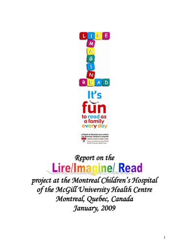 The Centre for Literacy of Quebec (CFL). Report on the Lire/Imagine/Read Project at the Montreal Children’s Hospital of the McGill University Health Centre. Montreal, QC, January 2009.