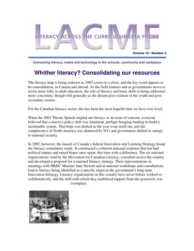 The Centre for Literacy of Quebec (CFL). “Literacy Across the Curriculumedia Focus” 16, no. 2 (2002).