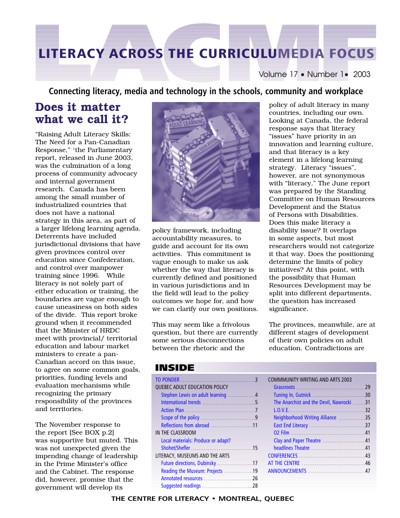 The Centre for Literacy of Quebec (CFL). “Literacy Across the Curriculumedia Focus” 17, no. 1 (2003).