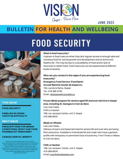 Vision Gaspé-Percé Now. “Bulletin for Health and Wellbeing” (June 2023).