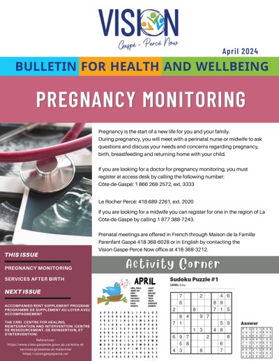 Vision Gaspé-Percé Now. “Bulletin for Health and Wellbeing” (April 2024).