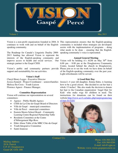 Vision Gaspé-Percé Now. [VISION AGM Report], 2014.