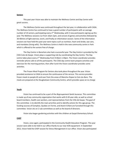 Vision Gaspé-Percé Now. Wellness Centre for Seniors. Brochure, n.d.