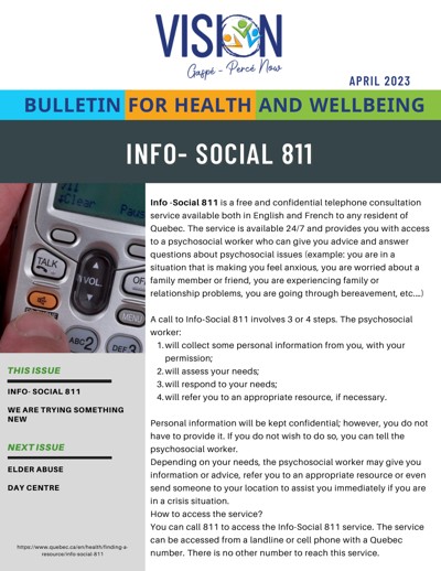 Vision Gaspé-Percé Now. “Bulletin for Health and Wellbeing” (April 2023).