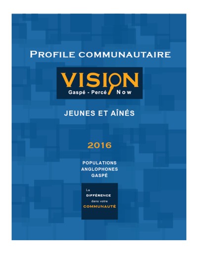 Vision Gaspé-Percé Now. Profile communautaire jeunes et aînés : Populations anglophones Gaspé, 2016.