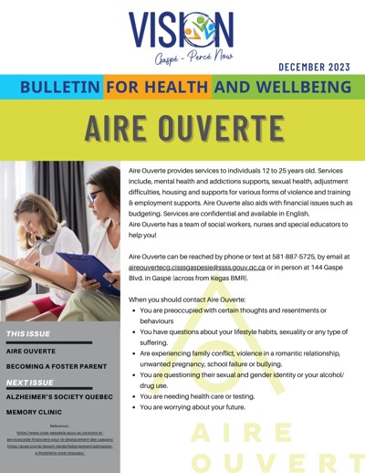Vision Gaspé-Percé Now. “Bulletin for Health and Wellbeing” (December 2023).