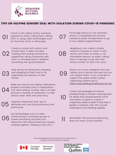 Seniors Action Quebec (SAQ). “Isolement des aînés et pandémie de Covid-19,” n.d.