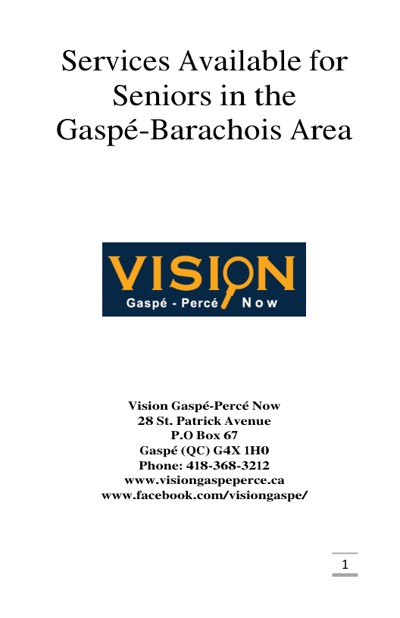 Vision Gaspé-Percé Now (VGPN). “Services Available for Seniors in the Gaspé-Barachois Area,” n.d.