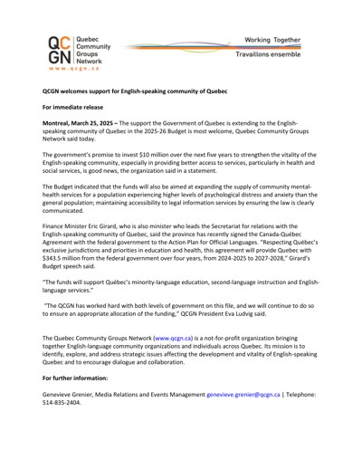 Quebec Community Groups Network (QCGN). “QCGN Welcomes Support for English-Speaking Community of Quebec,” March 25, 2025.