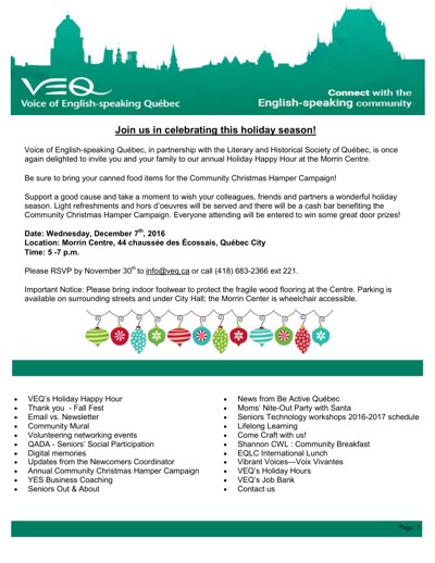 Voice of English-speaking Quebec (VEQ). “VEQ Newsletter” (November 2016).