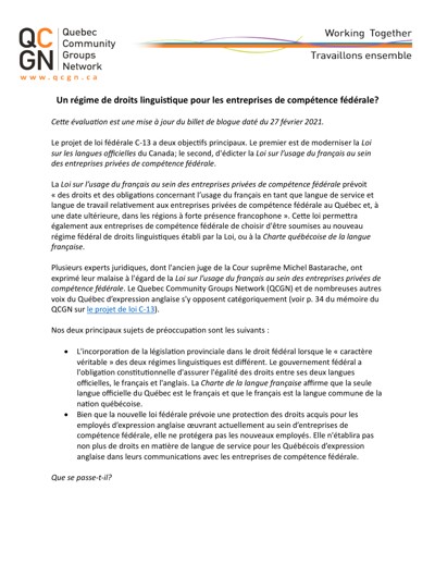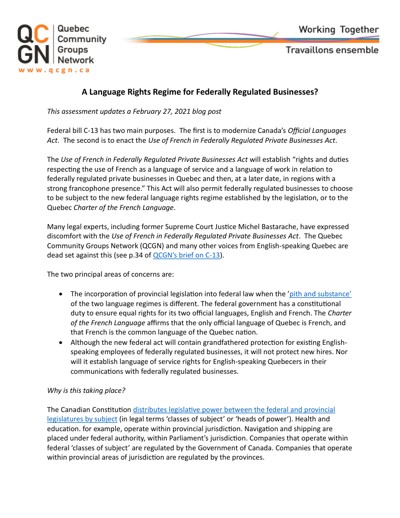 Quebec Community Groups Network (QCGN). “A Language Rights Regime for Federally Regulated Businesses?,” March 15, 2023.