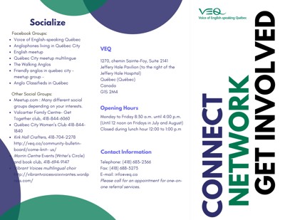 Voice of English-speaking Quebec (VEQ). Get Involved, Connected & Meet New People! Brochure, n.d.