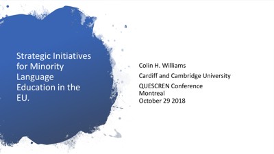 Williams, Colin H. “Strategic Initiatives for Minority Language Educaation in the EU” Presented at the QUESCREN Forum : Minority Community Vitality Through Education, Montréal, QC, October 29, 2018.