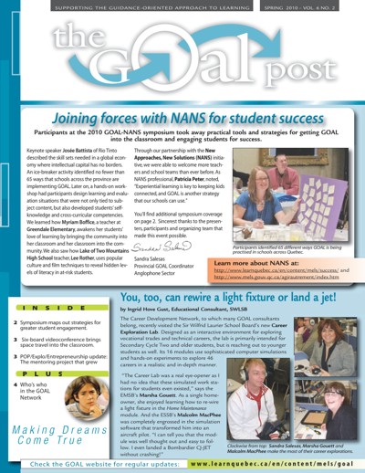 Guidance-Oriented Approach to Learning (GOAL) Networking Committee. “The GOAL Post” 6, no. 2 (Spring 2010).