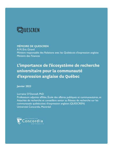 O’Donnell, Lorraine. L’importance de l’écosystème de recherche universitaire pour la communauté d’expression anglaise du Québec, January 2023.