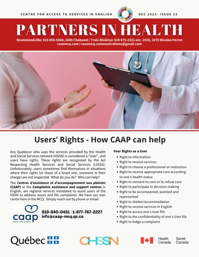 Centre for Access to Services in English (CASE). “Partners in Health,” no. 23 (December 2023).
