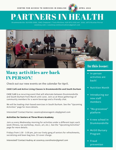 Centre for Access to Services in English (CASE). “Partners in Health” 16 (April 2022).