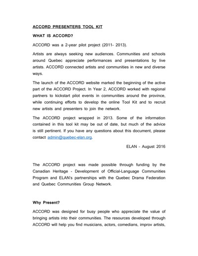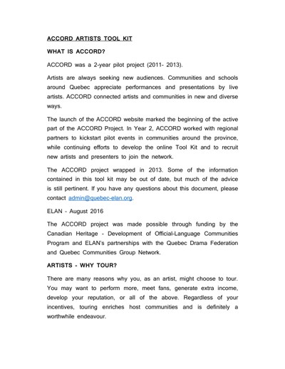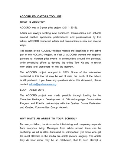 English Language Arts Network (ELAN). “ACCORD Artists Tool Kit,” August 2016.