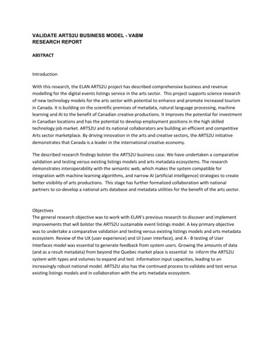 English Language Arts Network (ELAN). Validate ARTS2U Business Model - VABM Research Report, April 20, 2020.