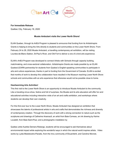English Language Arts Network (ELAN). “Musée Ambulant Visits the Lower North Shore!,” February 18, 2020.