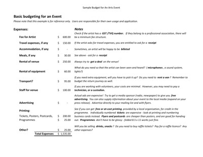 English Language Arts Network (ELAN). “Basic Budgeting for an Event,” 2012.