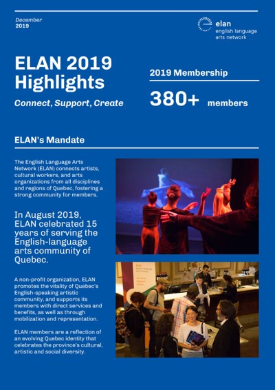 English Language Arts Network (ELAN). “ELAN Launches ArtistsInspire Grants (AIG), a $2.2 Million Investment for Quebec Official-Language Minority Schools to Create Arts and Cultural Opportunities,” May 23, 2019.