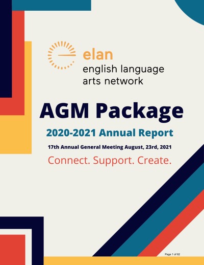 English Language Arts Network (ELAN). AGM Package : 2020-2021 Annual Report, August 23, 2021.