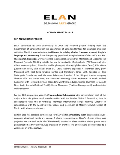 English Language Arts Network (ELAN). Activity Report 2014-15, 2015.