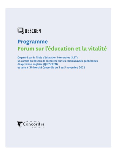 Quebec English-speaking Communities Research Network (QUESCREN). “Forum sur l’éducation et la vitalité,” November 3, 2021.